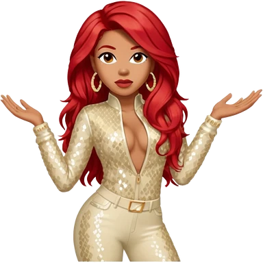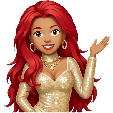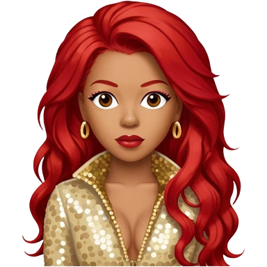 Keyshia Cole with long red hair, cream sequin outfit emoji