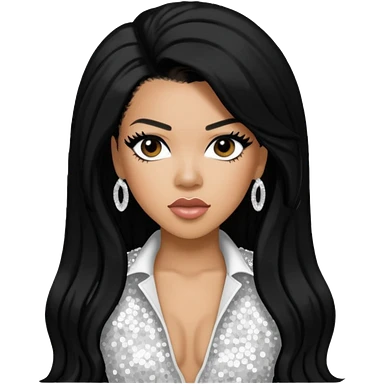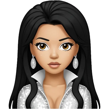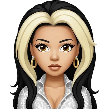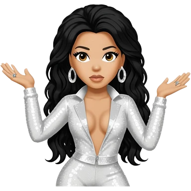 Keyshia Cole with long black hair, white sequin outfit emoji