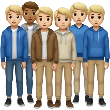 Cartagineses: un grupo de hombres jóvenes, pelo largo rubio y castaño, ropa buena, cara de niños de alrededor de unos 20/25 años. cuerpo entero emoji