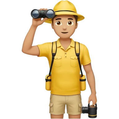 Male lifeguard – yellow shirt, binoculars in hand, scanning the sea emoji