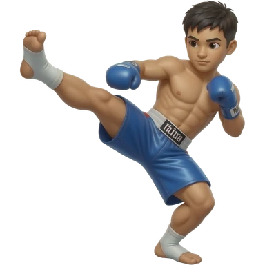 n icon showcasing a kickboxer in action, using precise techniques with both feet and elbows. One fighter delivers a powerful kick to the opponent's legs, while the other counters with an elbow strike. The background features a ring and a dynamic atmosphere. Transparent background emoji