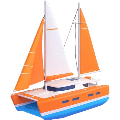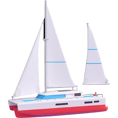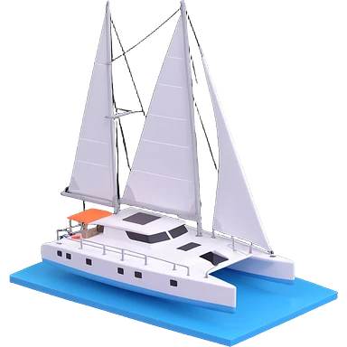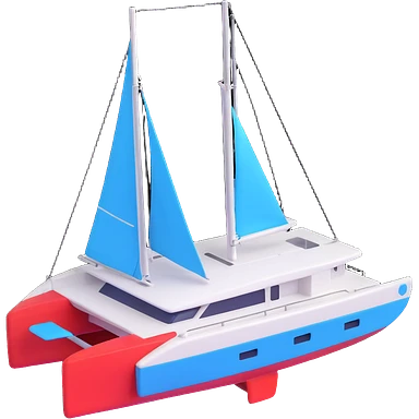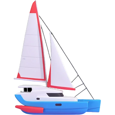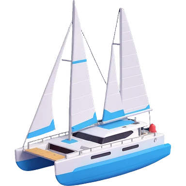 A catamaran with a white background. No wording or lettering on the boat. emoji