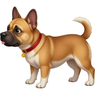 White French bulldog peeing on an iPhone emoji