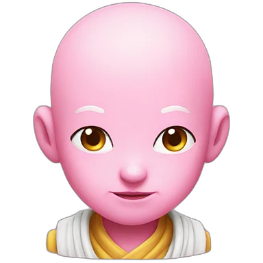 Majin Buu from Dragon Ball Z, pink round body with holes, antenna on head, childlike face emoji