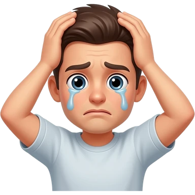 A drawing type emoji but it's in stress and thinking and almost crying or blushing and eyes are big and its hand are in his head emoji