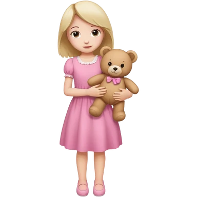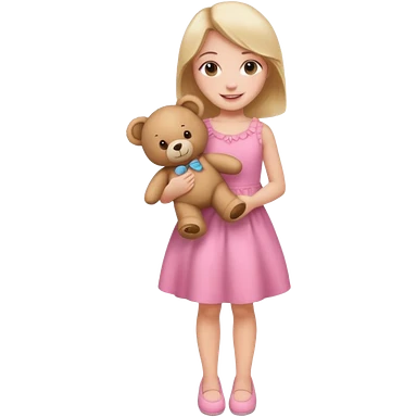 kid Girl in pink dress holding teddy bear, full body emoji | AI Emoji Generator