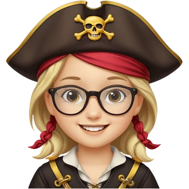 kid girl with pirate costume wearing glasses emoji | AI Emoji Generator
