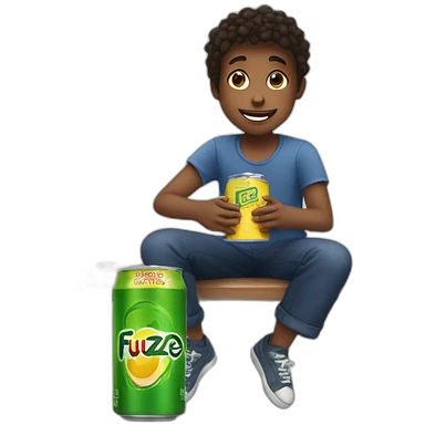 KID HOLDIN A CAN OF FUZE TEA WHILE SITTING ON A SWING emoji | AI Emoji Generator