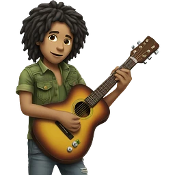 Three older white musicians jamming. one on a Gibson guitar, one on a Fender bass and one on a drum emoji