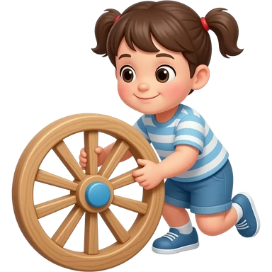 kid playing with wooden wheel emoji