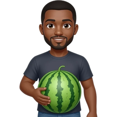 black man with a watermelon as a tummy emoji