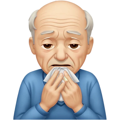 old man sneezing into tisue emoji