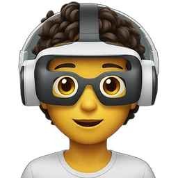 a guy with black hair, wearing a hoodie using a vr headset emoji