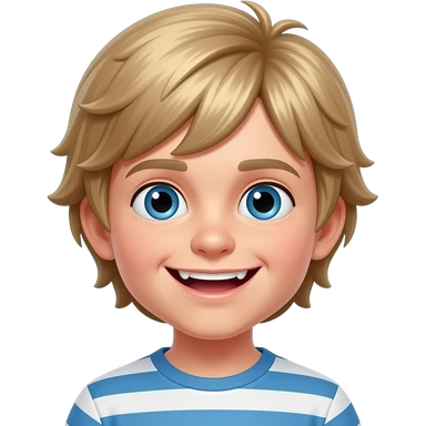 Make a dirty blonde kid with fluffy hair who’s teeth are perfect and blue eyes emoji
