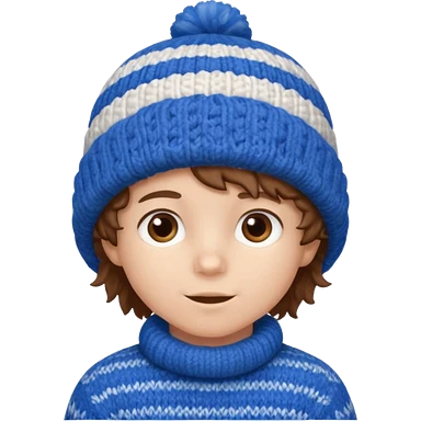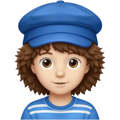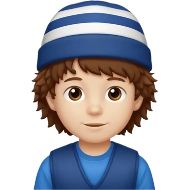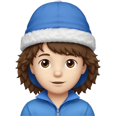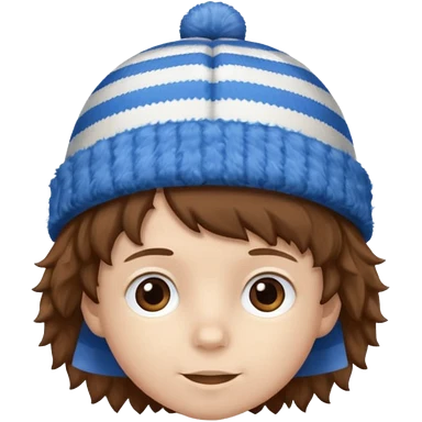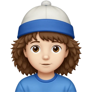 brown fluffy hair kid with blue and white hat emoji