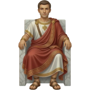 An emoji portrait of a young Roman patrician. He wears a white toga with a purple border. He has short curly hair and a dignified expression, holding a small scroll. emoji