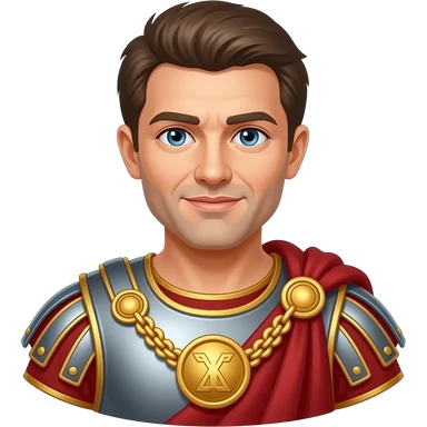 Julius Caesar as an emoji with Roman laurel wreath, toga, short hair, confident expression emoji