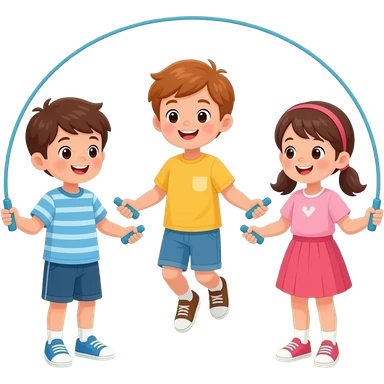 kids playing in the garden with jumprope emoji