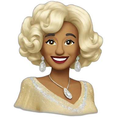 “Celia Cruz in a colorful outfit, smiling and performing with musical notes around her.” emoji
