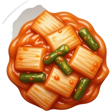 Kimchi Cinematic Realistic Kimchi Dish Emoji, depicted as spicy, fermented cabbage with vibrant red hues neatly served in a traditional jar, rendered with dynamic textures and bold, appetizing lighting. emoji