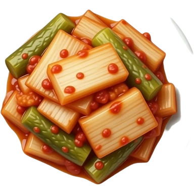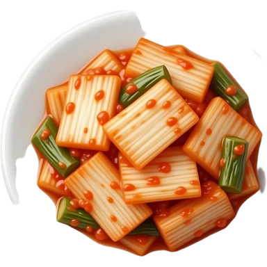 chopped up Kimchi Cinematic Realistic Kimchi Dish Emoji, depicted as spicy, fermented cabbage with vibrant red hues neatly served in a traditional jar, rendered with dynamic textures and bold, appetizing lighting. emoji