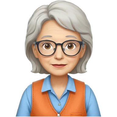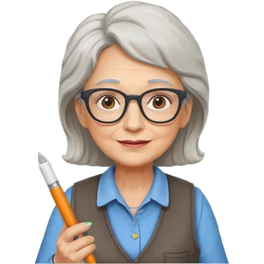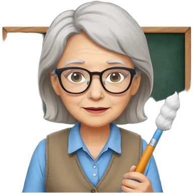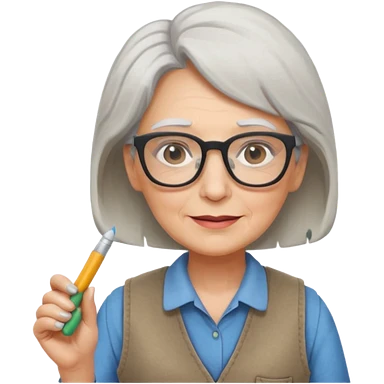 woman teacher, old, wearing vest, wearing glasses, hold chalk on their hand emoji