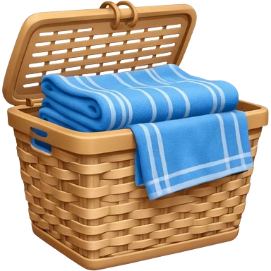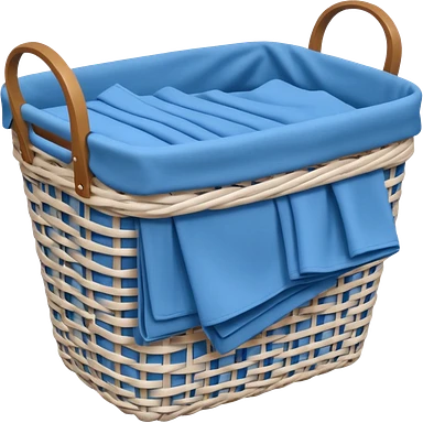 white LAUNDRY BASKET WITH FOLDED blue CLOTHES emoji