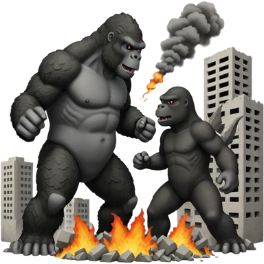 King Kong vs Godzilla with destroyed buildings in the background emoji