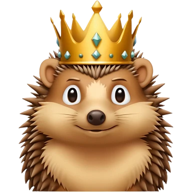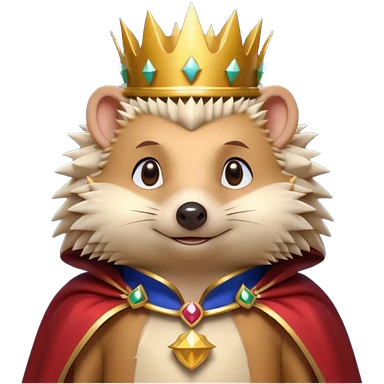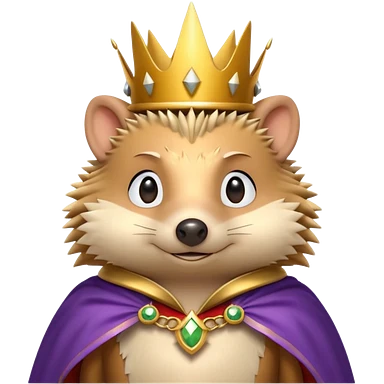 king hedgehog portrait, head and shoulders only, wearing a small golden crown, royal cape collar, proud confident expression, cute spiky fur details, fantasy royal vibe, 3D cartoon, mobile game icon style, clean background, no text, no watermark emoji