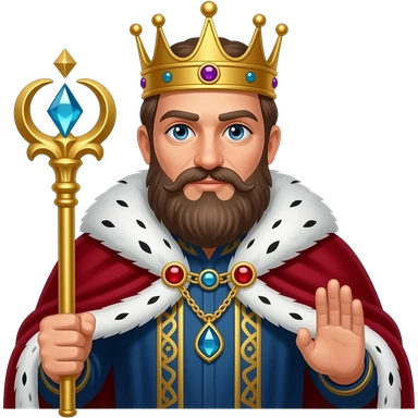 King Solomon with hazel eyes, long black hair, royal purple metallic shirt, blue metallic baggy pants, gold necklace and earrings emoji