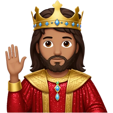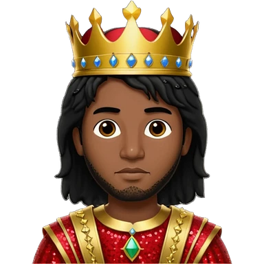 King Solomon from The Bible with black hair, red sequin outfit emoji | AI Emoji Generator