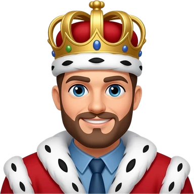 Donald Trump is a king in a fur hat, holding a staff hyper realistic emoji