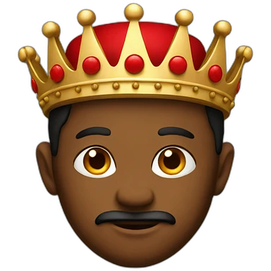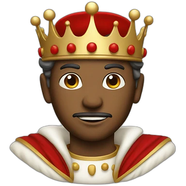 an old king with yellow skin, red eyes, 60 years old, black hair, black beard, wearing a crown, red robe, fierce face, baron/lord vibe emoji