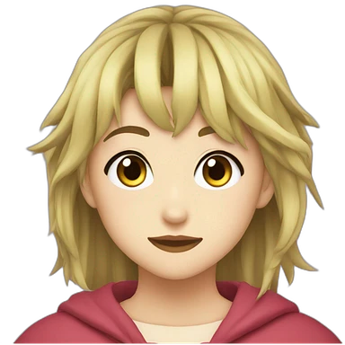 SARI SAÇLI SAÇININ YARISI SOLA DOĞRU DİĞERİNİN SAĞ TARAFTA AMA DÜZ DURAN KAHVERENGİ GÖZLÜ UZUN KİRPİKLİ BUĞDAY RENKLİ KIRMIZI ÜNİFORMALI BİR ERKEK ÇOCUK emoji