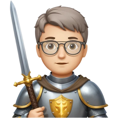 Knight holding sword, wearing glasses — glasses shining reflection emoji