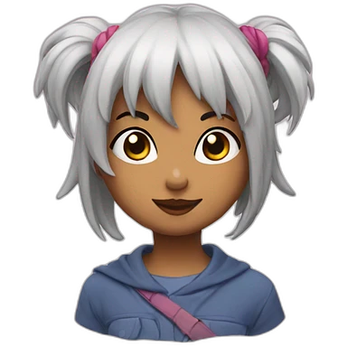 siyah kıvırcık kısa saçlı açık tenli bir kız çekik gözlü emoji
