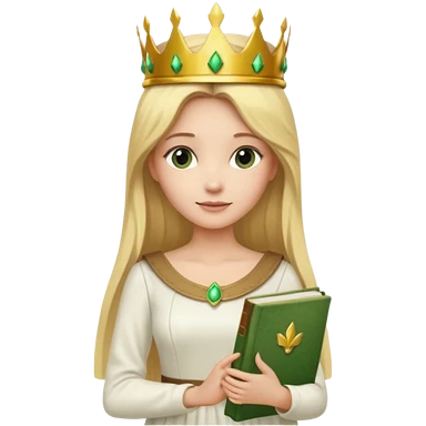 Long blonde straight Hair Women with green Book, white dress , crown emoji