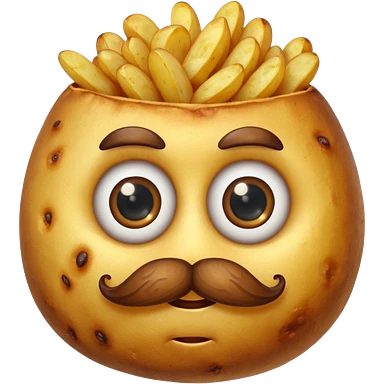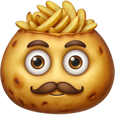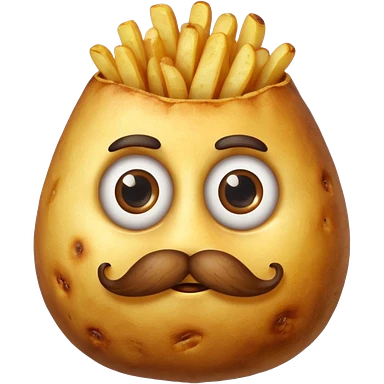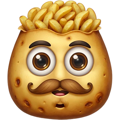 single fried potato with eyes and mustache emoji