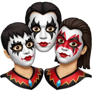“Three friends at a party: one making a kissy face, one giving a playful cheek kiss, and one smiling widely. Show a fun, happy vibe of friendship with unique expressions.” emoji