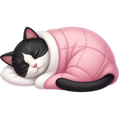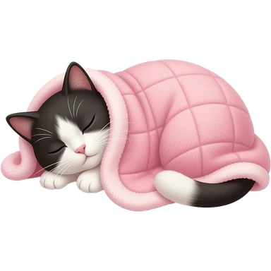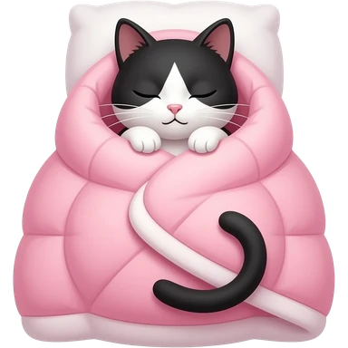 make my black and white cat sleep covered in a soft pink blanket emoji