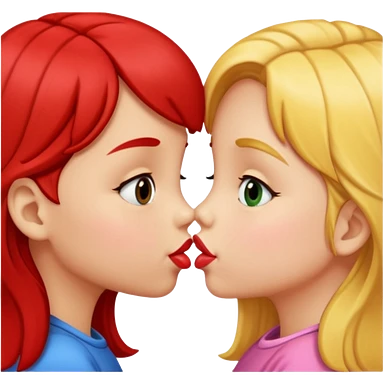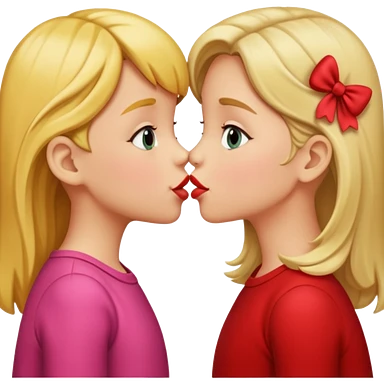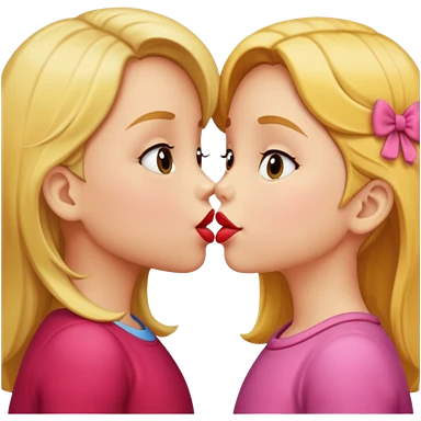 two 5 year old gals about to kiss on the lips, lips extremely close but not touching emoji