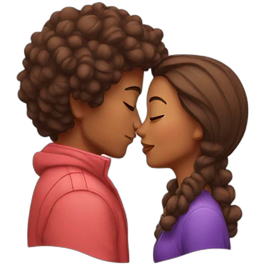 kissing couple, pale girl with brown hair and tan boy with black curly hair emoji