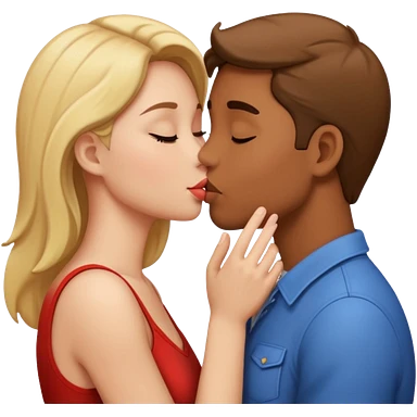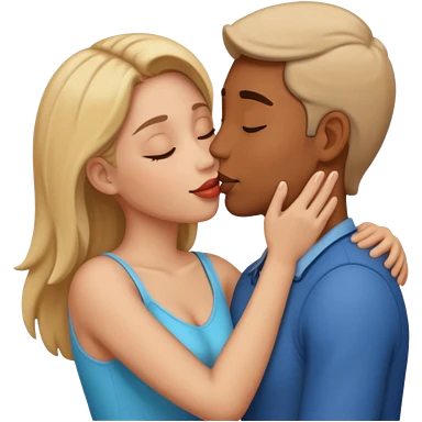 kissing blonde girl with blue eyes and white boy with dark brown hair emoji