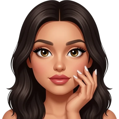 A baddie emoji with long eyelashes and big lips with long nails and it has curly hair emoji