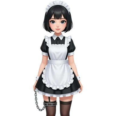 female maid, black pixie cut hair, chain attached to leg emoji