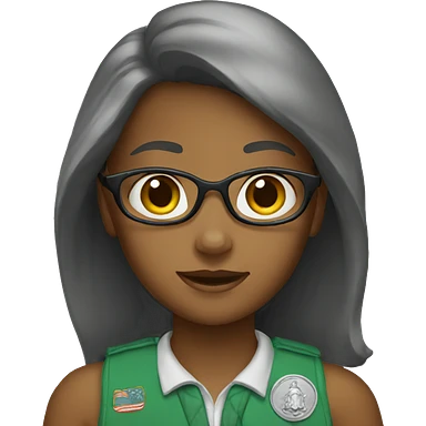 white girl scout selling cookie at Wendy’s big black hair on ponytail and Wendy’s logo emoji