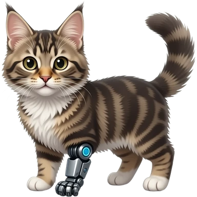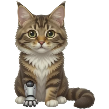 maincoon kitten with a robotic left front leg emote facing us emoji