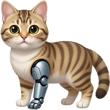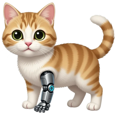 kitten with a robotic right front leg emote emoji | AI Emoji Generator