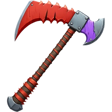 savage barbarian axe object icon, spiked double blade, battle-worn metal, scratches, heavy fantasy weapon, 3D cartoon, mobile game icon style, centered, clean background, no text, no watermark emoji