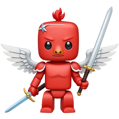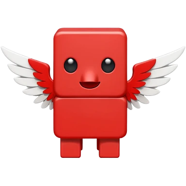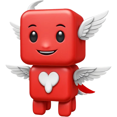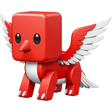 A blocky red creature with white wings and question marks on its eyes. emoji